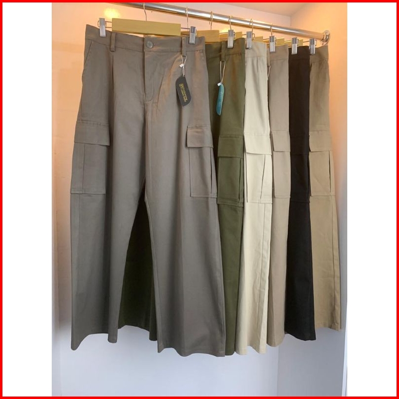 Jva.id Cargo Pants Highwaist Twill Combed Celana Kulot Wanita Saku Cargo