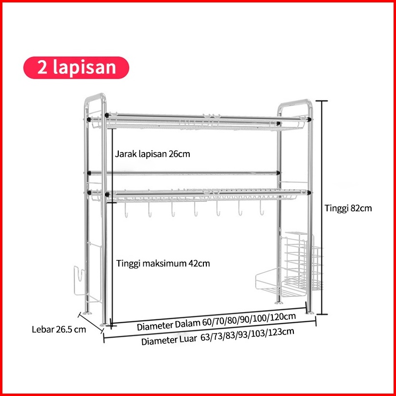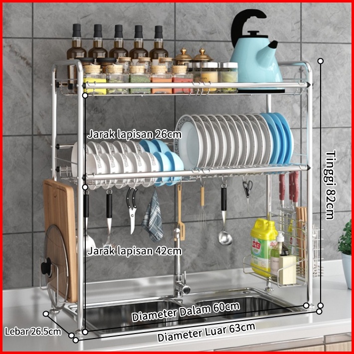 Rak Dapur Stainless Rak Wastafel Rak Piring Dan Peralatan Dapur Kokoh Kuat Rak