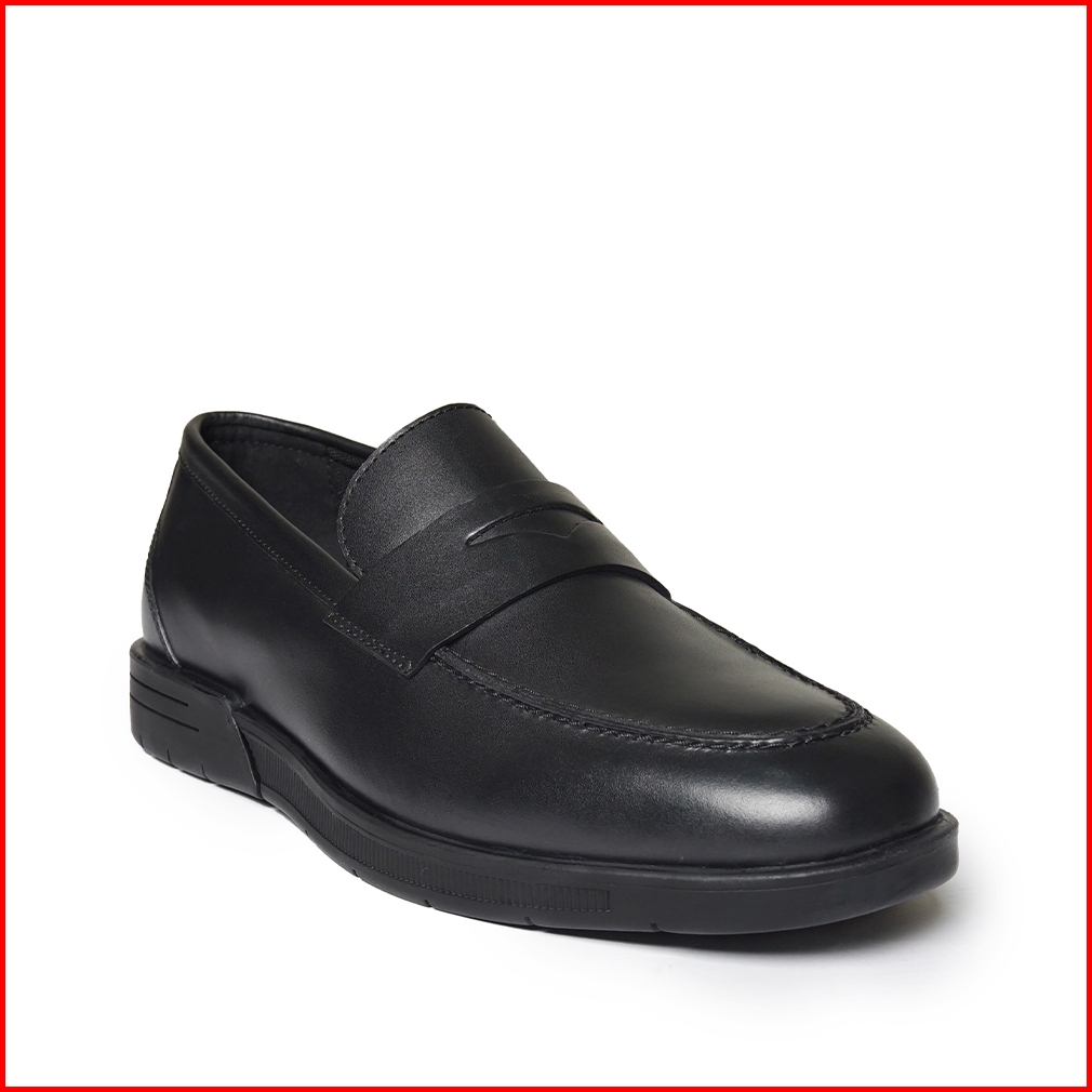 Prabu - Nadik Black Sepatu Kulit Slip On Pria Hitam