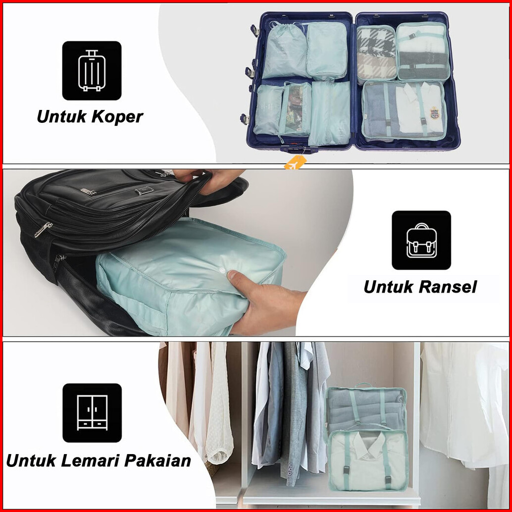 10 In 1 Travel Bag Tas Travel Organizer Bag Pouch Set Storage Luggage Bag Tas Penyimpanan Travelling Tas Travel Organize