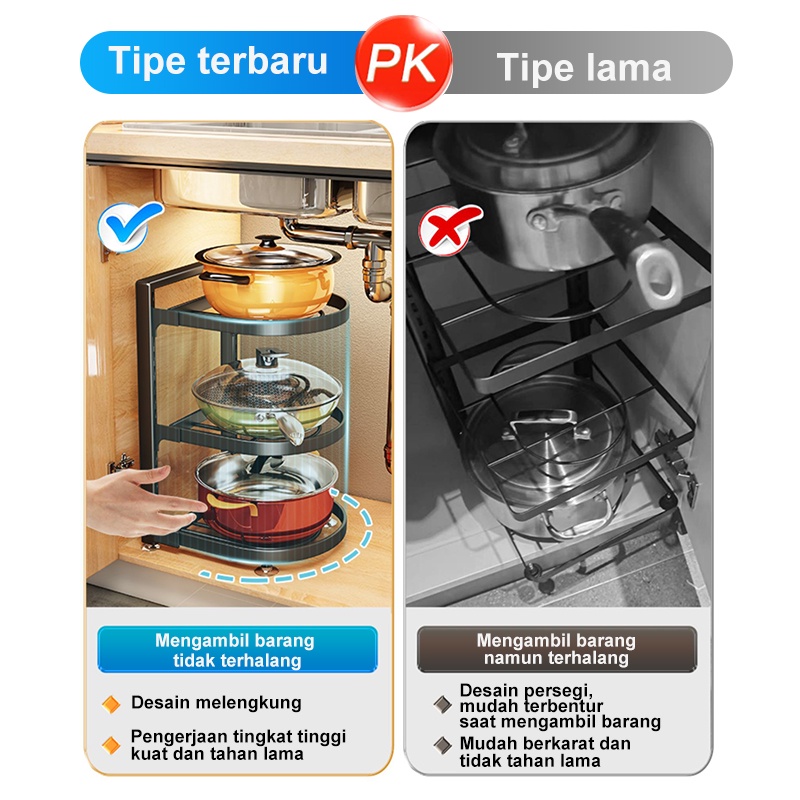 rak panci susun Rak Kolong Dapur Rak Pot Kabinet Atas Wastafel Dapur Di Bawah Rak Wajan Rak Dapur
