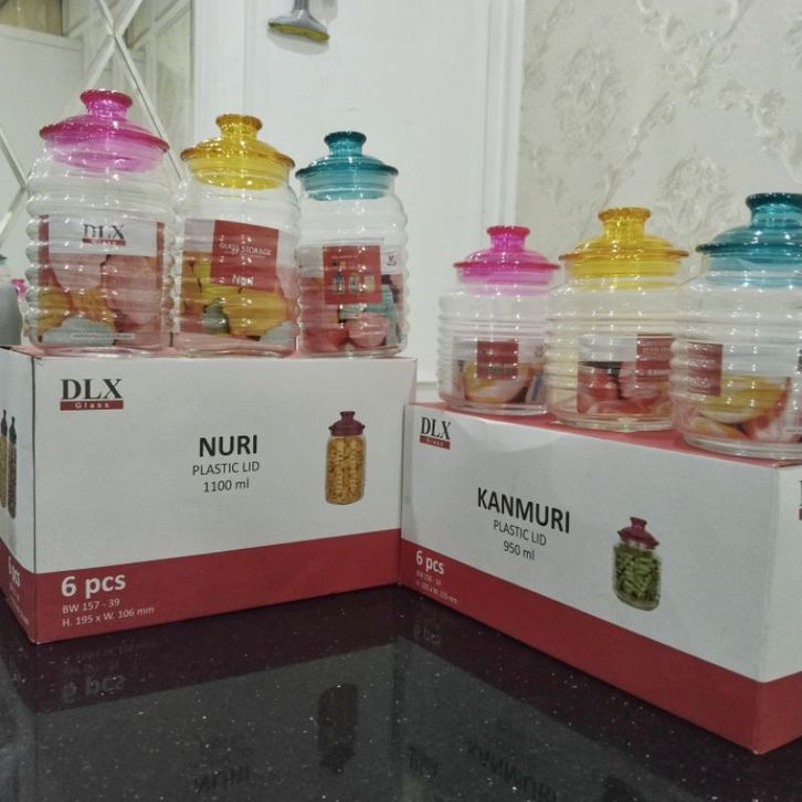 Promo Toples Kaca DLX Citinova Kanmuri dan Nuri Set Isi 6 Pcs Toples Kaca Ulir Toples Kacang Toples