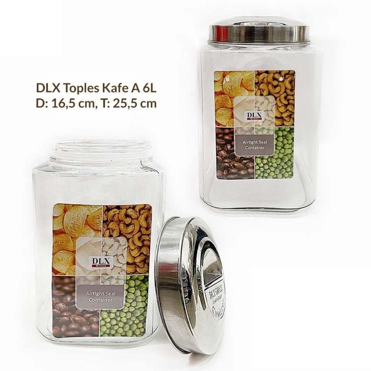 Promo Glass Canister Toples Besar DLX Cafe A Kotak 6 Liter