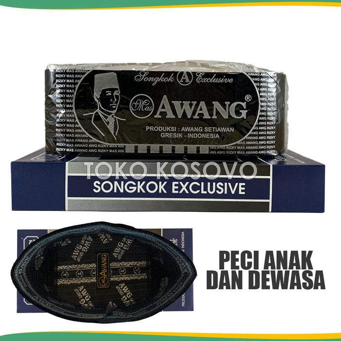 Peci Songkok Kopiah AWANG AC Hitam Polos JUMBO - Tinggi 9 No 12