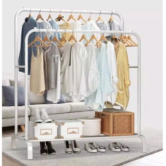 Gantungan Baju Besi Stand Hanger Single-Double Gantungan Baju Stand Hanger Portable Rak Jemuran