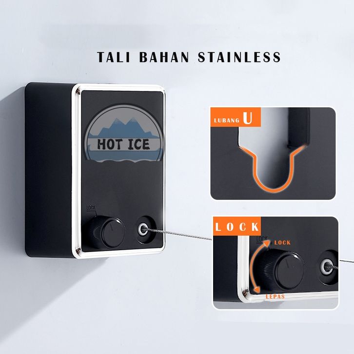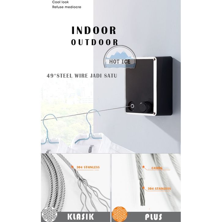 Jemuran Baju Portable Indoor Outdoor Retractable Tali Clothesline Bahan Stainless