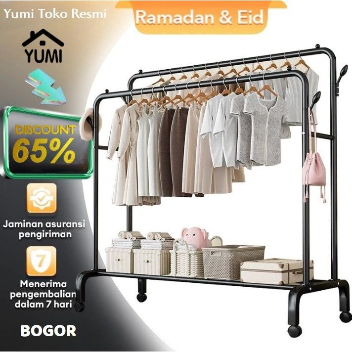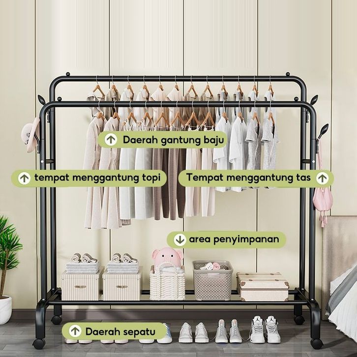 Rak Gantung Baju Rak Gantungan Baju Berdiri Stand Hanger Display Butik Bazar Hitam/Putih