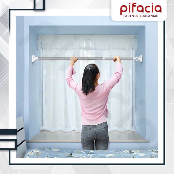 Tiang Jemuran Fleksibel Gantungan Baju Pakaian Handuk Penyanggah Multifungsi Tanpa Paku Bor