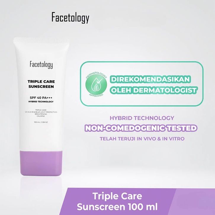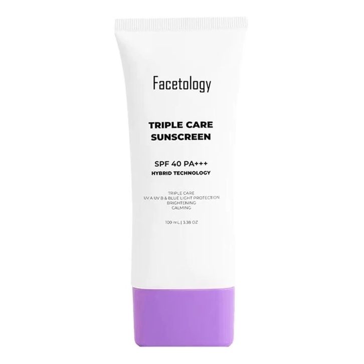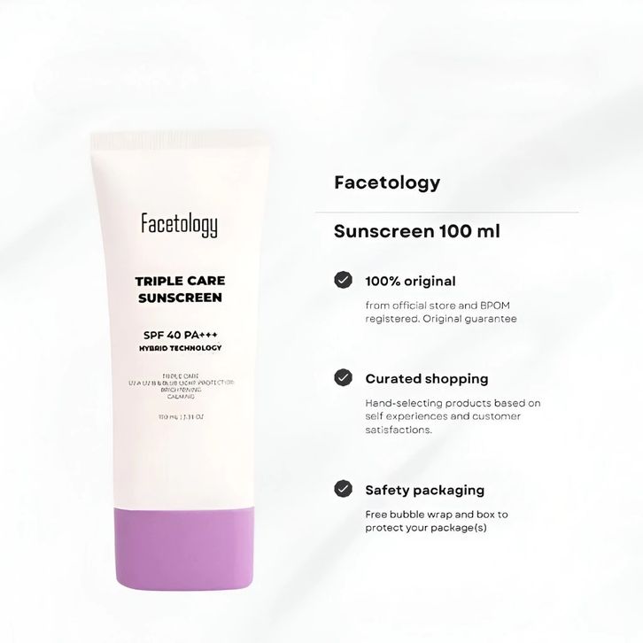 FACETOLOGY SUNSCREEN SPF40 100ML - BESAR | Facetology Triple Care Sunscreen SPF 40 PA+++ 100ml (Tube)