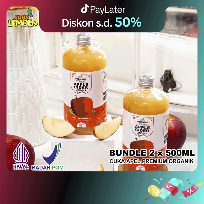 SUUR LEMOEN Cuka Apel Apple Cider Vinegar 1 Liter CUKA APEL Organik With The Mother - Cuka 2 x 500 ml