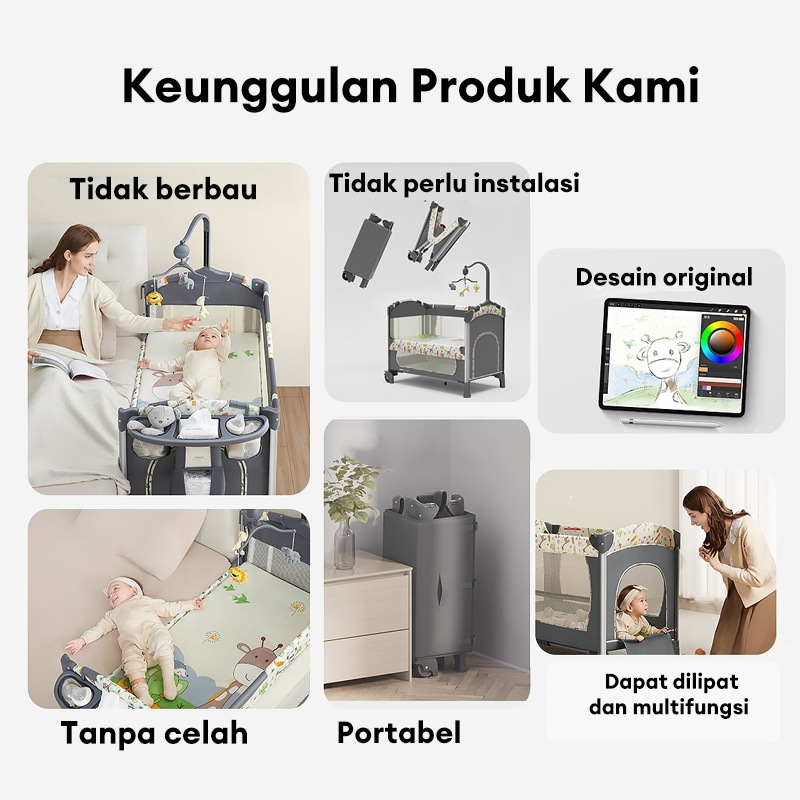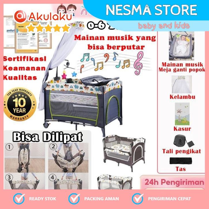[Garansi 10 Tahun]Tempat Tidur Bayi Box Bayi Lipat Multifungsi Bisa Dilipat 6 in 1 NESMA STORE/PERLENGKAPAN IBU BAYI/MUR