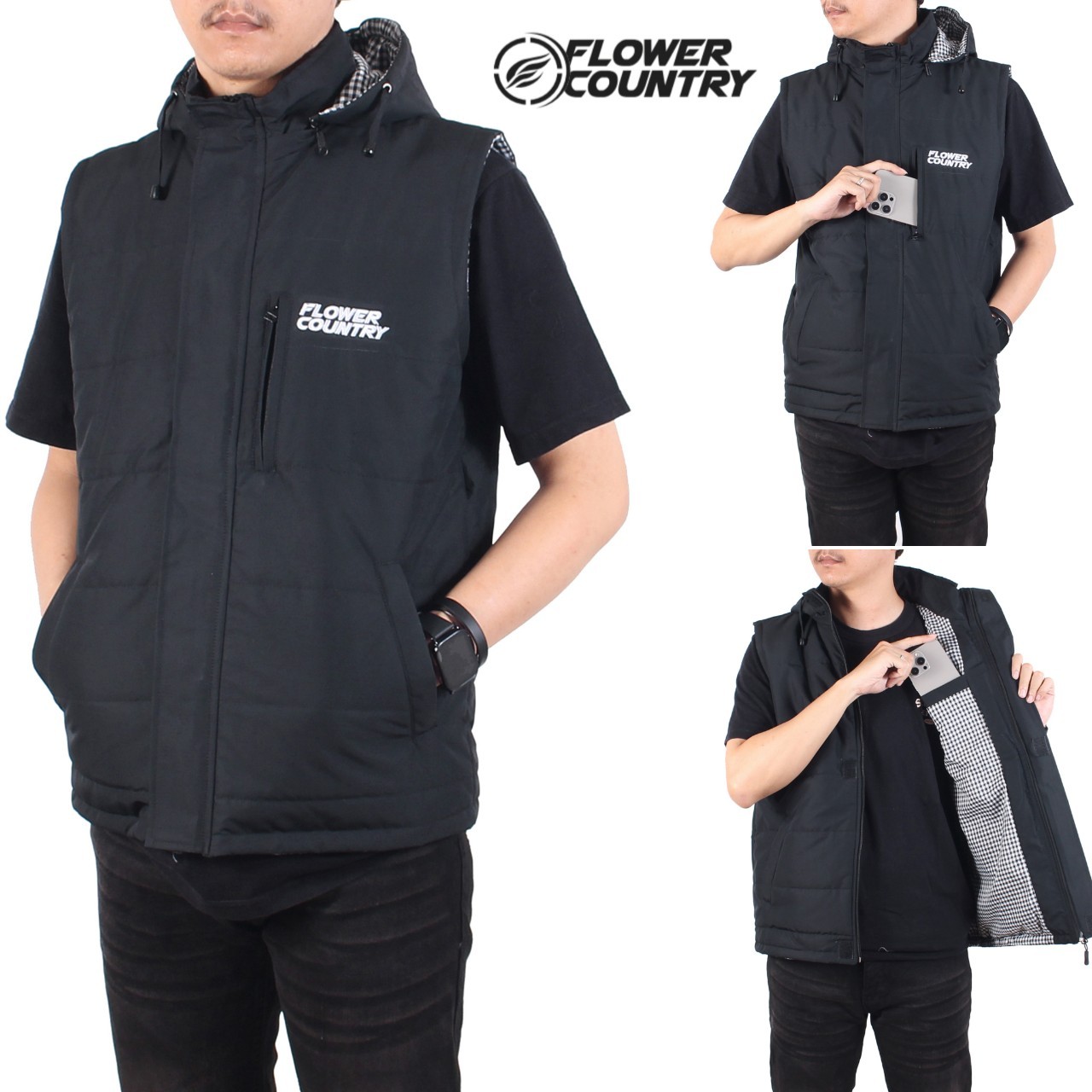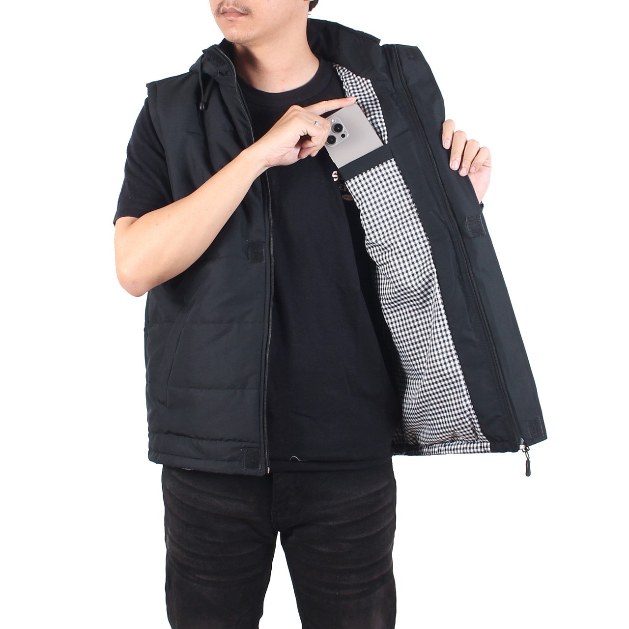 Jaket Rompi Pria Vest Hoodie Hitam / Black Jaket Rompi Hoodie Bisa Dilepas High Quality Adreena Store