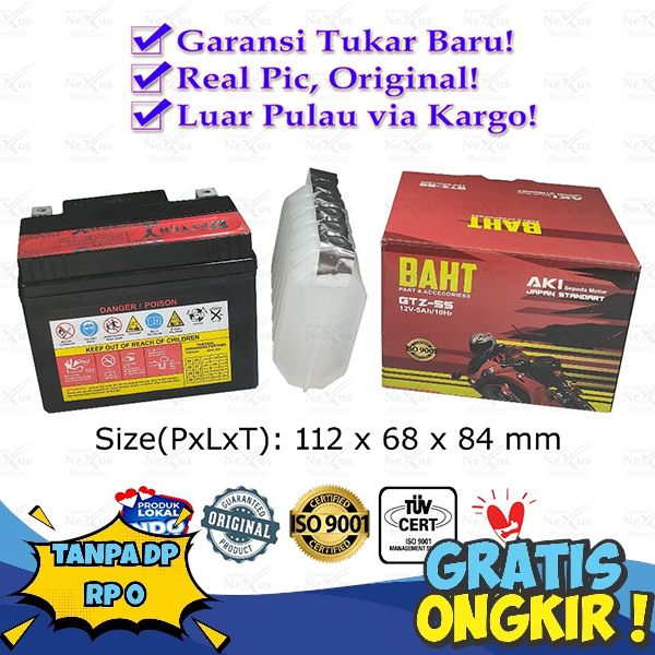 [Mall] Aki Motor Baht GTZ-5S YTZ3 GTZ4V YTZ4V YTX4L YB4LA YB4LB GTZ5S YTZ5S BTZ5S 12V 5Ah Karisma Beat Mio