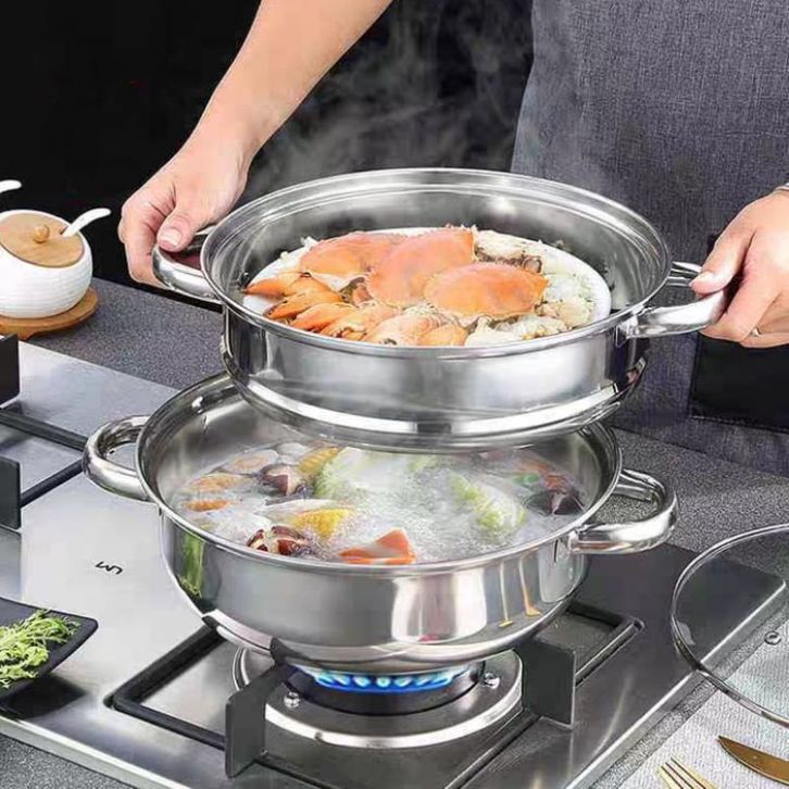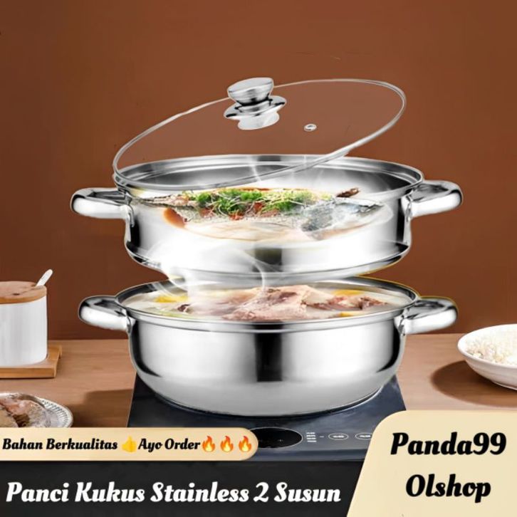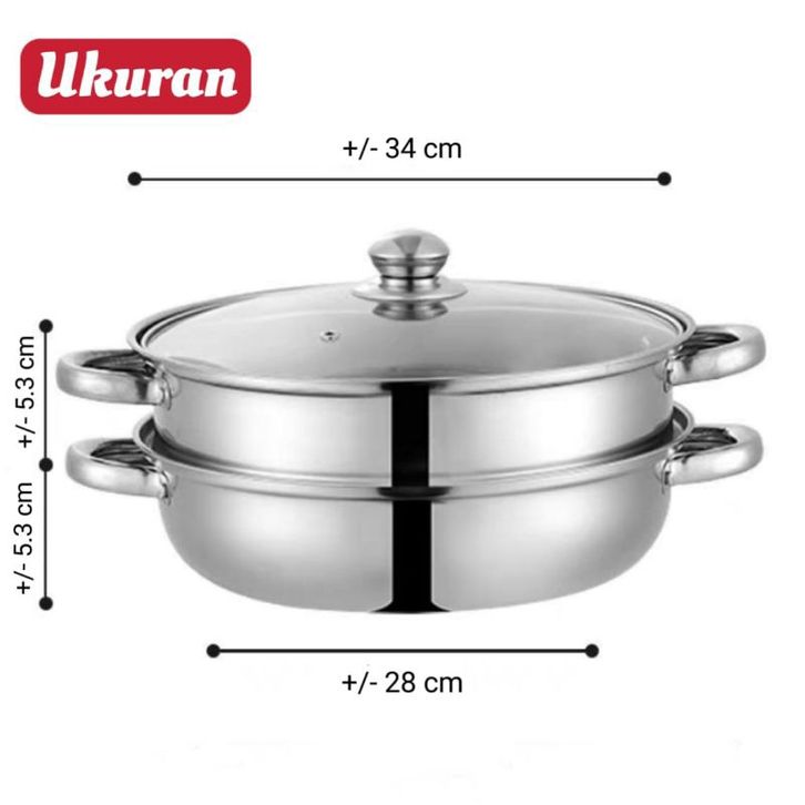Panci 2 Susun Besar Kukus Steamer Stainless 28cm Kukusan Siomay Bakpao Awet Dan Anti Karat Dilengkapi Tutup Kaca Recomen