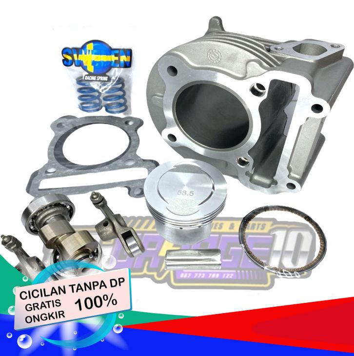BLOK SEHER BORING PAKET BOREUP MIO NOUVO PISTON 58,5 155 CC SET NOKEN AS RACING PER KLEP RACING KOMPLIT