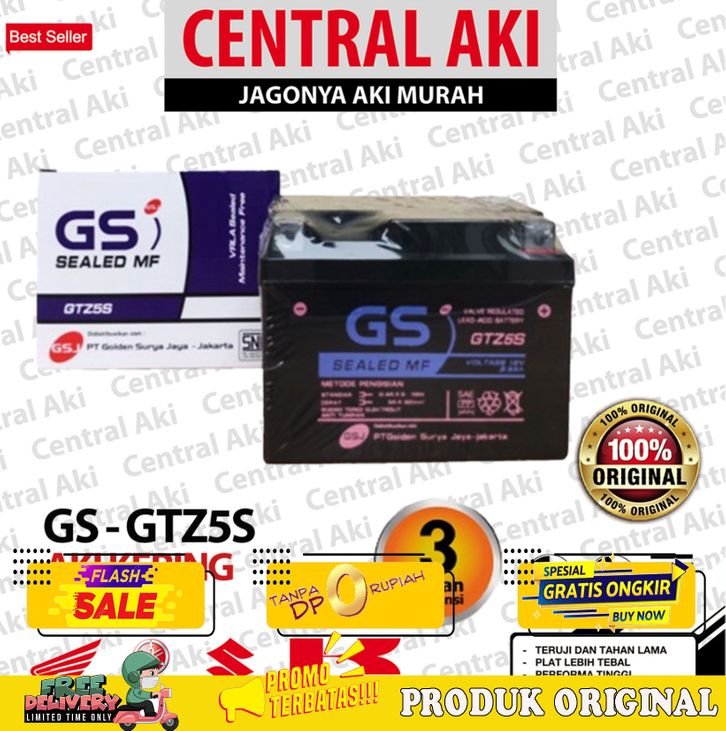 [GRATIS ONGKIR]Aki Motor GTZ5S MF Aki Kering Motor Honda Beat Vario 110 Supra X 125 Scoopy Spacy Blade Revo New Mega Pro