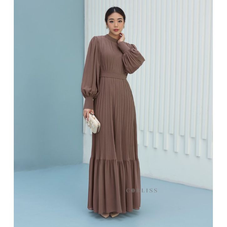 Gamis Wanita Terbaru 2025 Dress Premium Ceruty Mix Inner Baju Muslim Wanita Mewah Motif Polos Model Pauline Tren