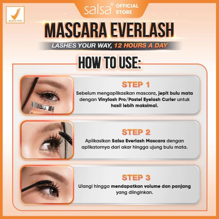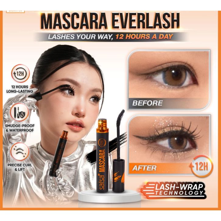 SALSA Everlash Mascara 12H Long-lasting Mascara – Pelentik Bulu Mata | Penebal Bulu Mata | Mascara Waterproof Tahan Lama