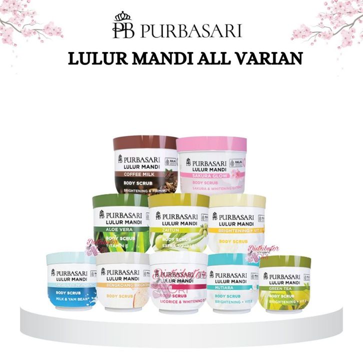 PURBASARI LULUR MANDI 100g / 200gr scrub badan / lulur badan bengkoang putih brightening vitamin susu mutiara green tea