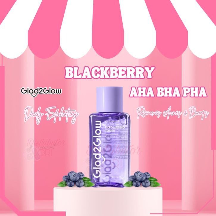 Glad2Glow Blackberry AHA BHA PHA Daily Exfoliating Toner 80ml | Eksfoliasi Wajah Gently Exfoliates Removes Acnes & Bumps