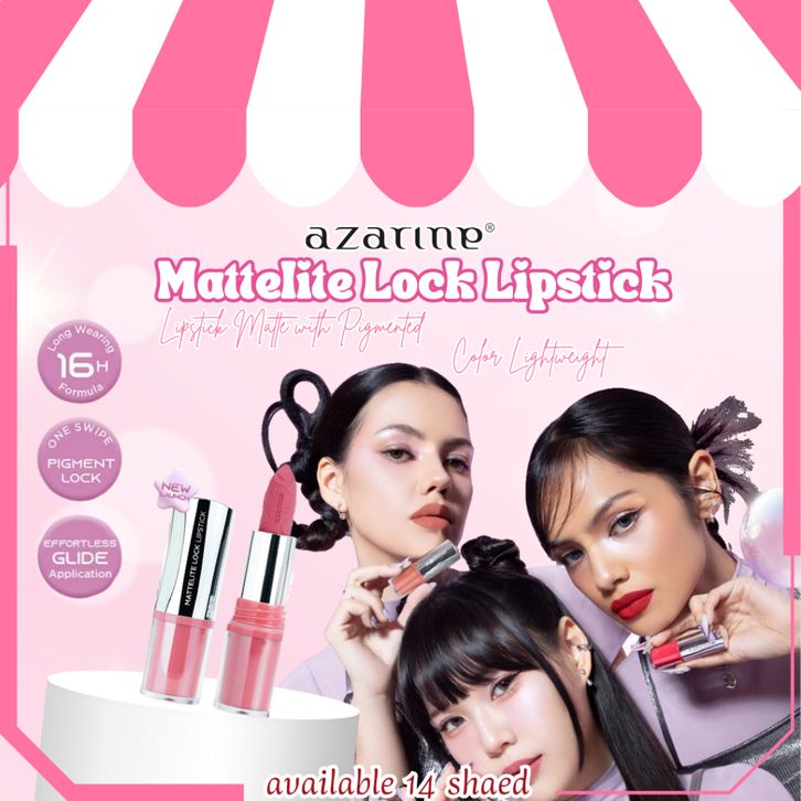 Azarine Mattelite Lock Lipstick 4gr Lipstick Matte with Pigmented Color Lightweight Transferproof Smudgeproof | BPOM