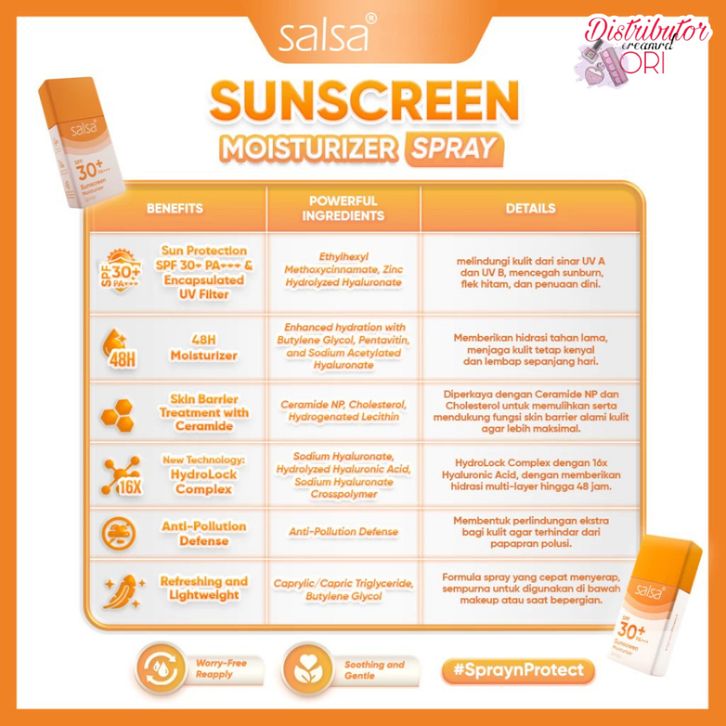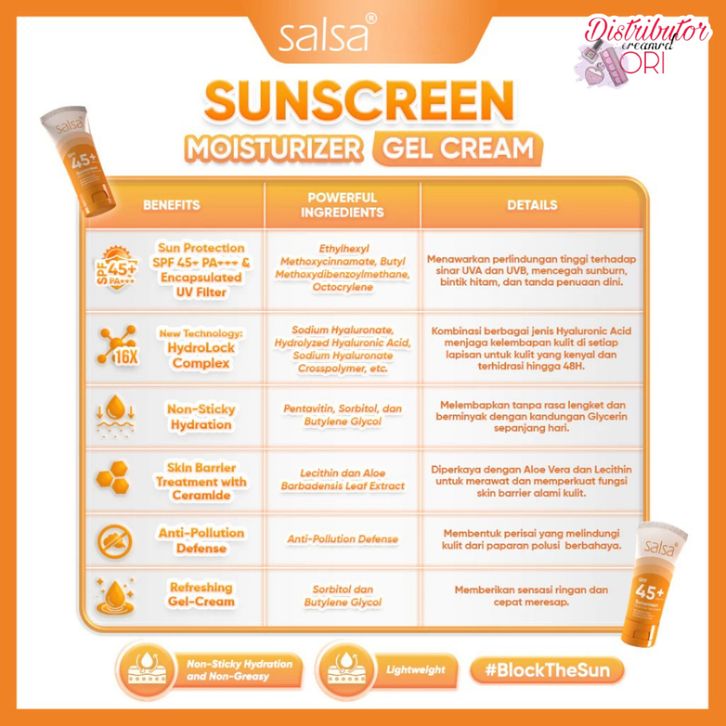 Salsa Sunscreen Moisturizer Gel Cream SPF 45+ PA++++ (TUBE) | BPOM