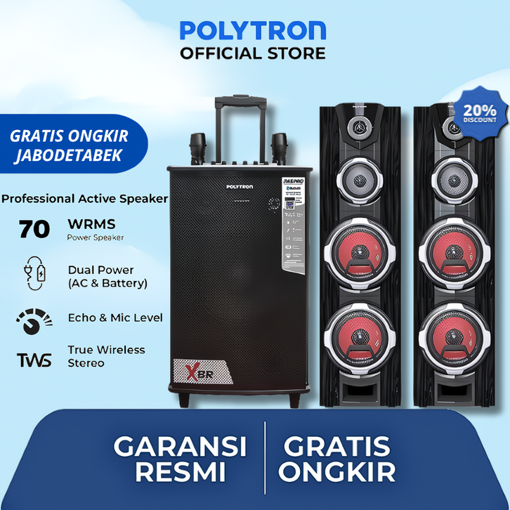 Speaker Aktif Polytron PAS PRO10F7 Super bass Bluetooth 8/12/15 Inch Portable Free Mic 2 Karoke Gmc|Advance