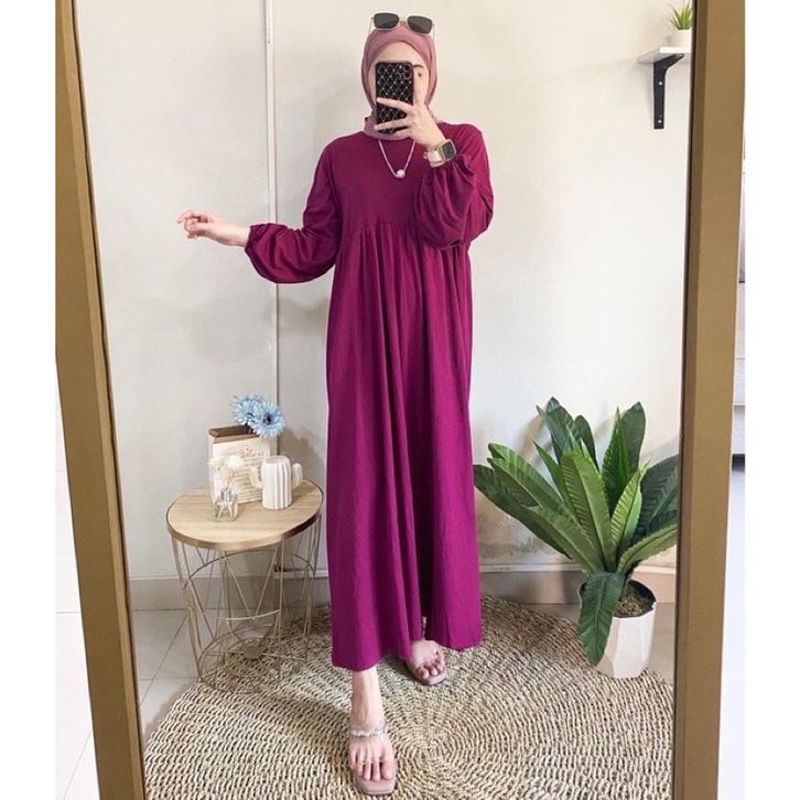 Dress Kaos Cotton Combed Balena Midi Polos Oversized Jumbo XXL P130 Grosir Modellano Bahan Berkualitas
