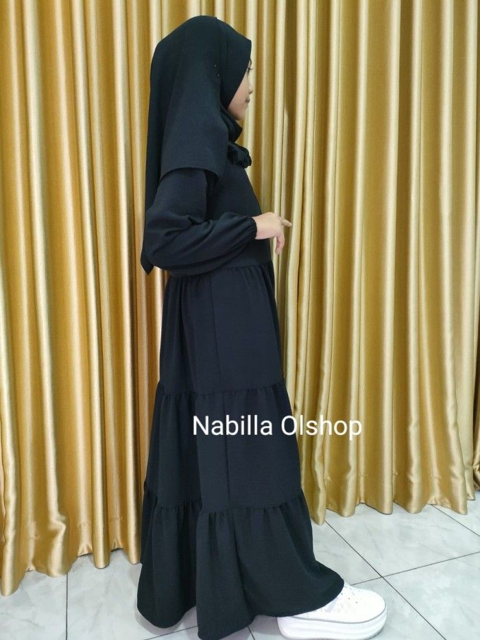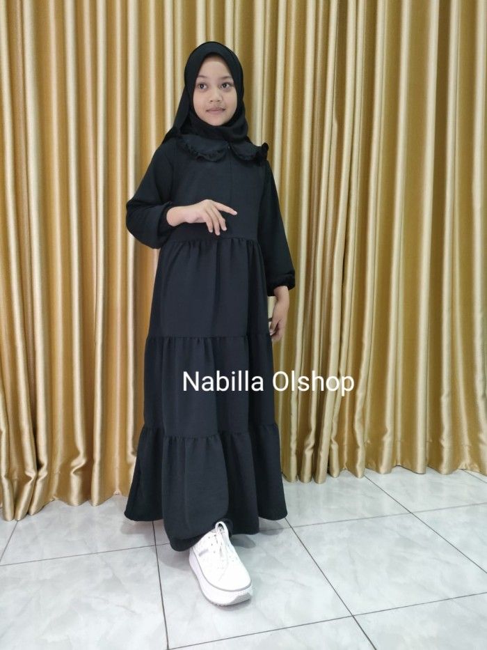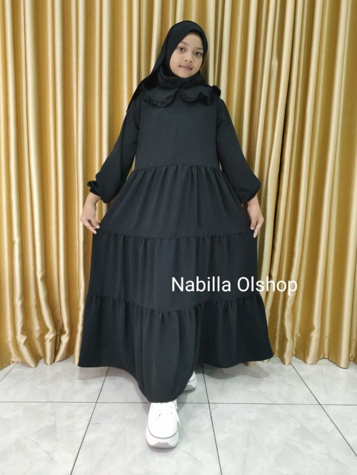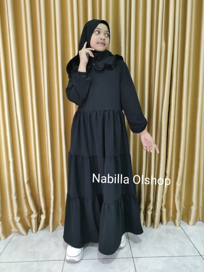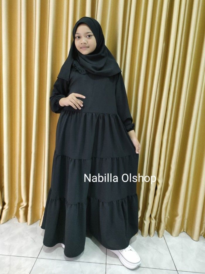 Gamis Anak Perempuan Gamis anak perempuan hitam set jilbab 3-15 tahun - Hitam 3-4 tahun