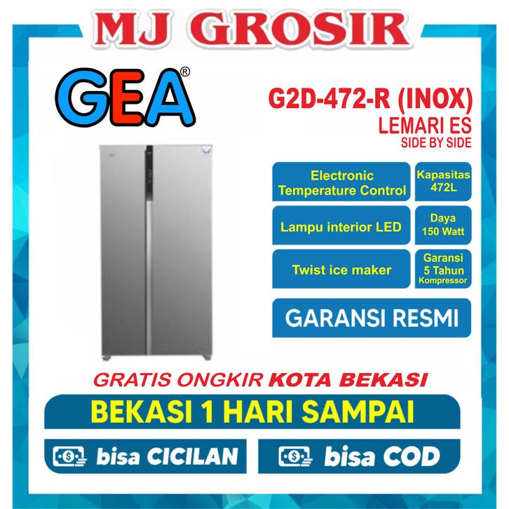 KULKAS GEA G2D 472 INOX LEMARI ES 2 PINTU G2D-472 G2D472 SIDE BY SIDE