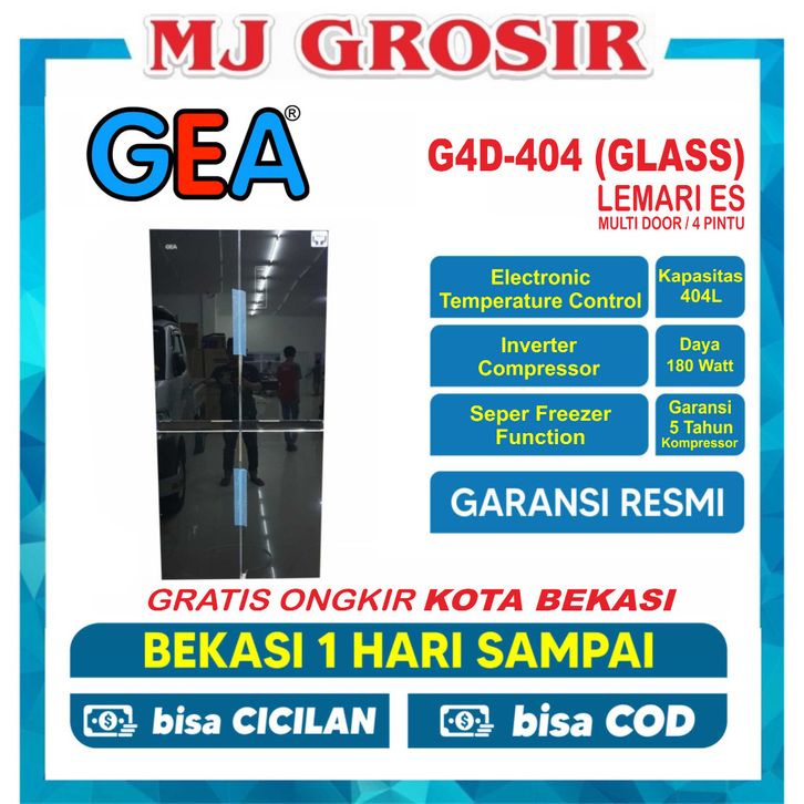 KULKAS GEA G4D 404 LEMARI ES SIDE BY SIDE G4D-404 4 PINTU BLACK GLASS