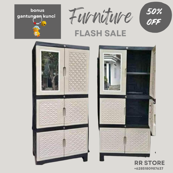 Lemari Baju jumbo Lemari PLastik AQUOSE JUMBO Susun 4 PLUS Cermin KACA Full Kunci lemari plastik