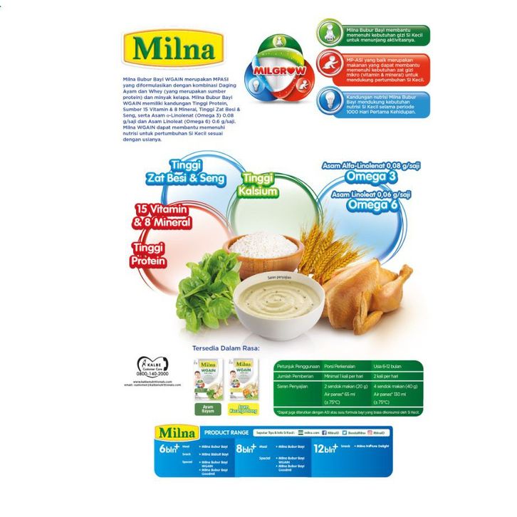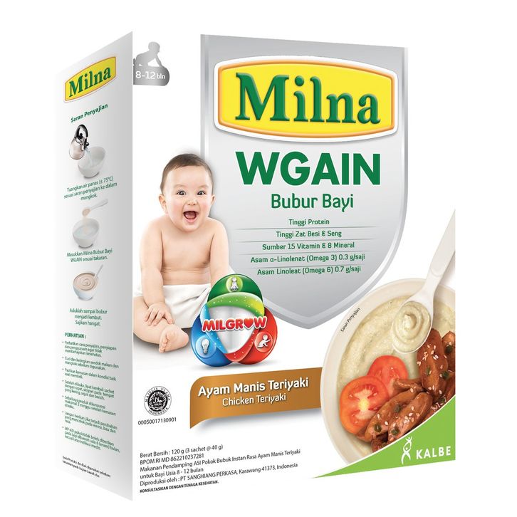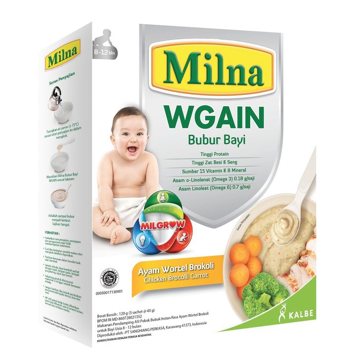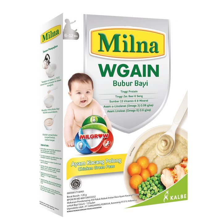 Milna Wgain 6+ dan 8+ 120 g / Milna Bubur Bayi Penambah Berat Badan / Bubur Bayi Milna