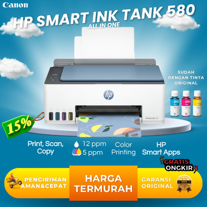 Printer HP Smart Tank Wifi Original Print Scan Copy Bluetooth Mini Thermal Free Tinta L3210 Epson L3250 Canon Resi