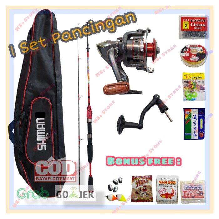 Set Alat Pancing 1 set alat pancing pancingan lengkap joran reel tas senar kail timah - Joran 165 Reel 2000