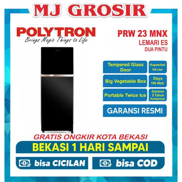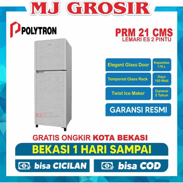 KULKAS POLYTRON PRM 23 MNX LEMARI ES 2 PINTU PRM 21 CMS TEMPERED GLASS