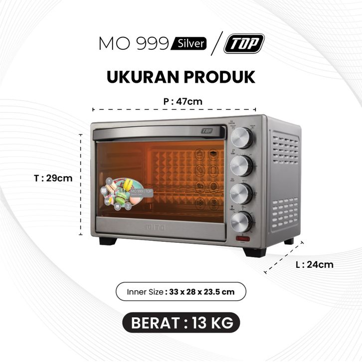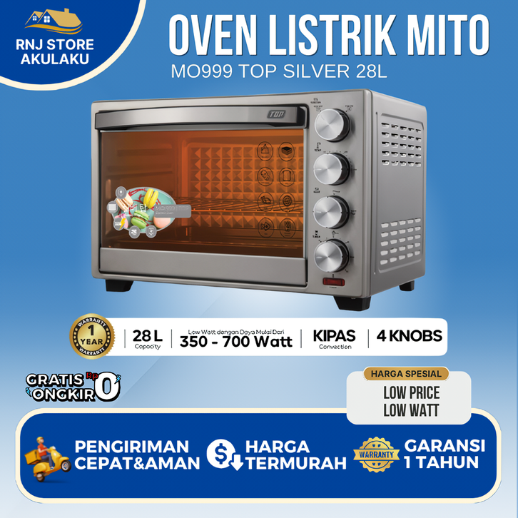 MITO Electric Oven MO999 TOP SILVER 28L oven listrik best seller low watt berkualitas pemanggang kue 33 besar