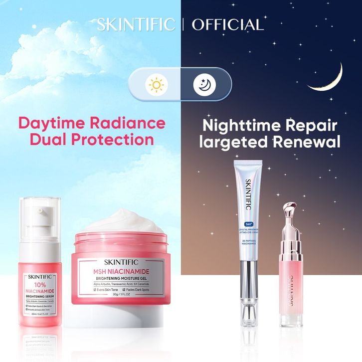 SKINTIFIC - 4pcs Paket Day&Night Skincare Set |Glowing Whitening Set Dark Spot Set repairs dryness-Skincare