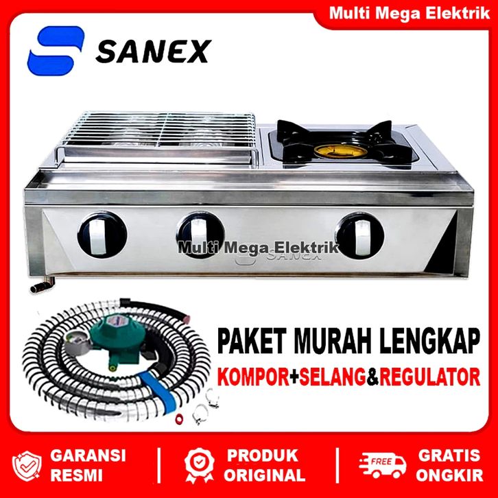 KOMPOR GAS 3 TUNGKU SANEX 2 IN 1 + PANGGANGAN SN-KKP128