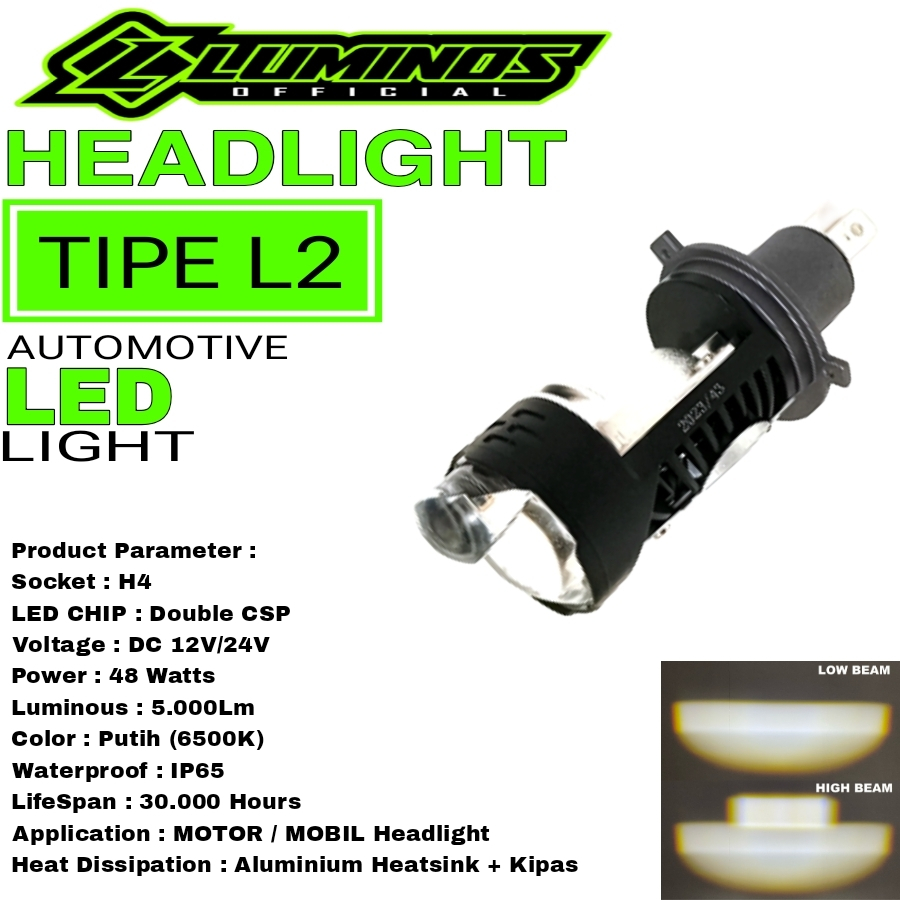 Lampu Led Mini Projie Biled Projector Mobil Motor H4 LUMINOS LED L2 DDP219