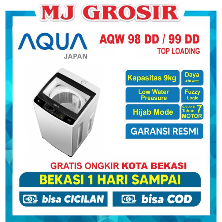 MESIN CUCI AQUA JAPAN AQW 98DD/99DD 9KG 1 TABUNG TOP LOADING HIJAB