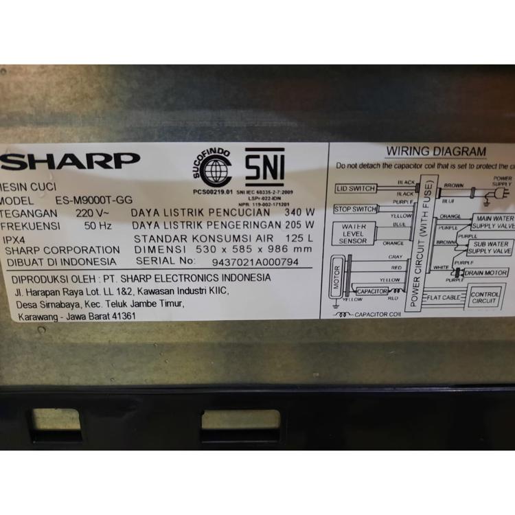 MESIN CUCI SHARP ESM 9000 9 KG 1 TABUNG ESM9000 TOP LOADING