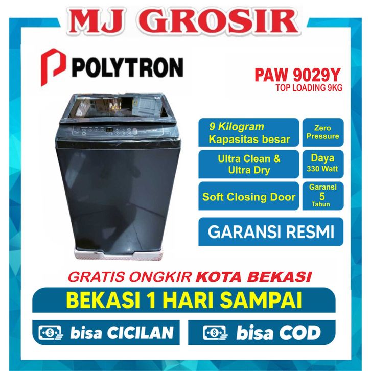 MESIN CUCI 1 TABUNG POLYTRON PAW 90518 / PAW 9029 Y TOP LOADING 9 KG ZEROMATIC