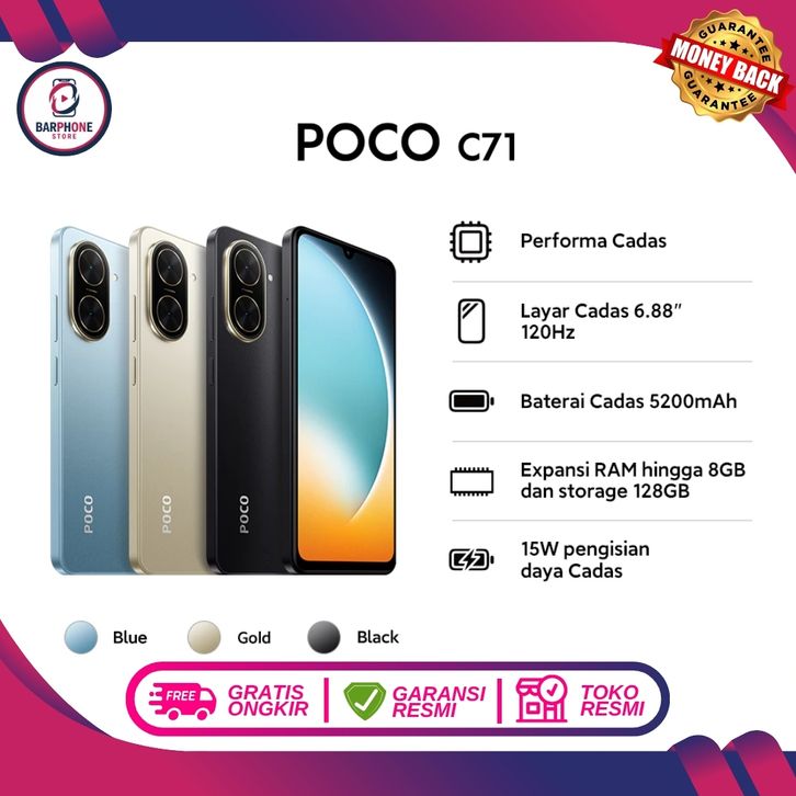 POCO C71 4+4GB/128GB PERFORMA CADAS LAYAR CADAS 6.88" 120HZ BATERAI CADAS 5200MAH