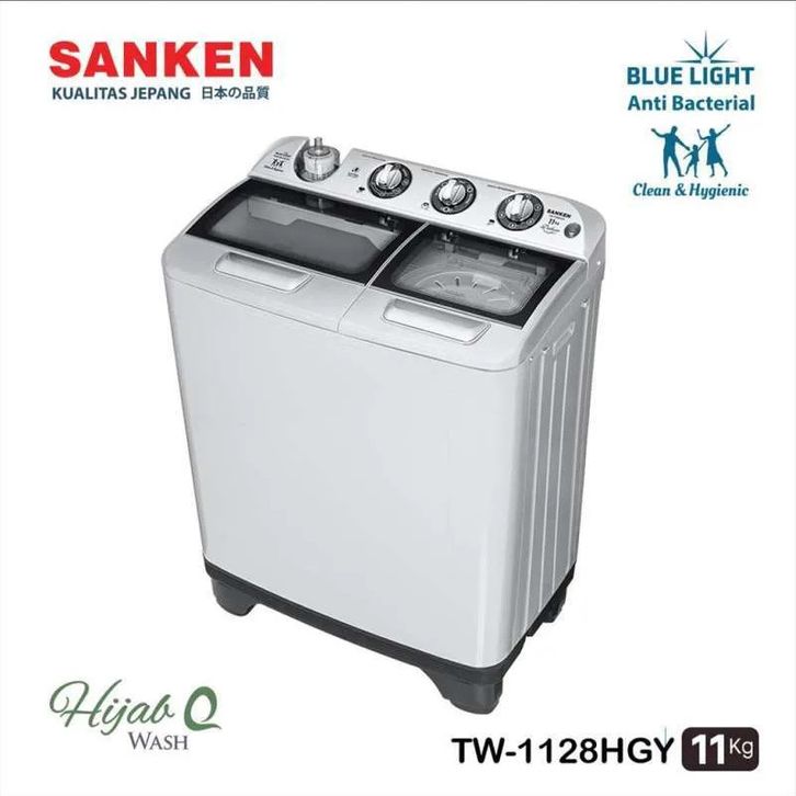 MESIN CUCI SANKEN TW 1128 HGY 11KG 2 TABUNG TW-1128HGY 11KG blue light
