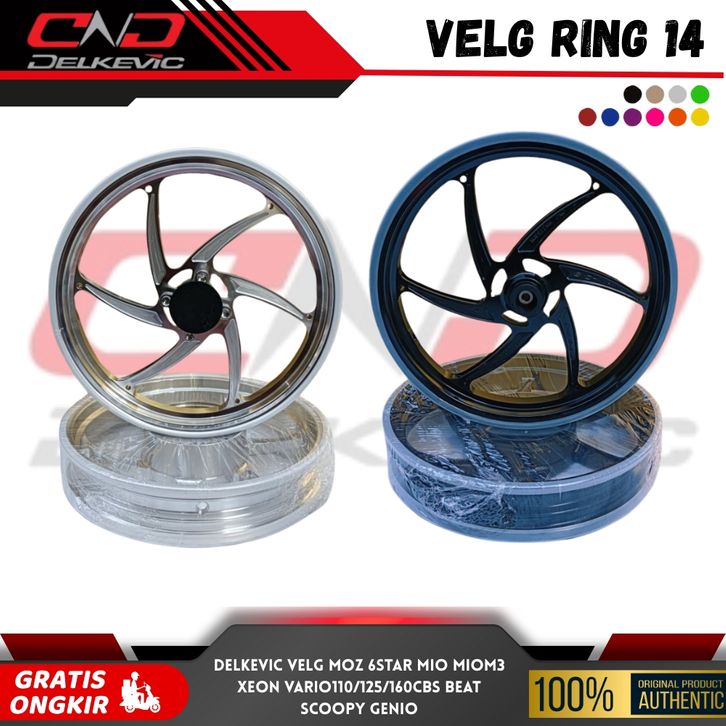 VELG DELKEVIC MOZ 6 STAR VARIO 160 ABS & STYLO UK 1.85/2.50X14 SILVER BLUE TITANIUM ORANGE VIOLET ORIGINAL GRATIS ONGKIR
