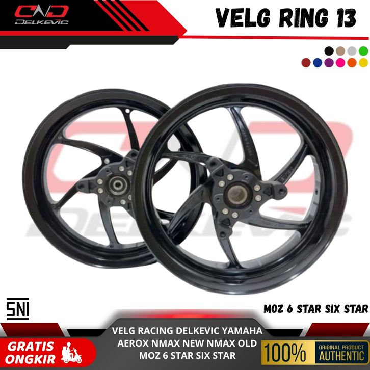 DELKEVIC VELG/PELAK RACING ORIGINAL DND MODEL MOZ 6 STAR YAMAHA AEROX NMAX NEW NMAX OLD 300/400/13 GRATIS ONGKIR