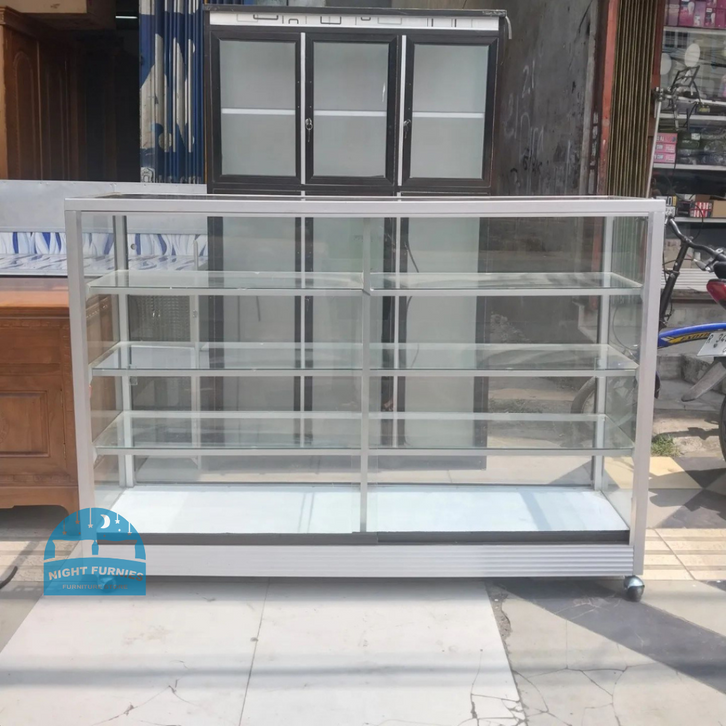 Roda / Etalase kaca 1.5 meter / etalsae kaca alumunium minimalis / etalase kaca pakai roda / etalase toko