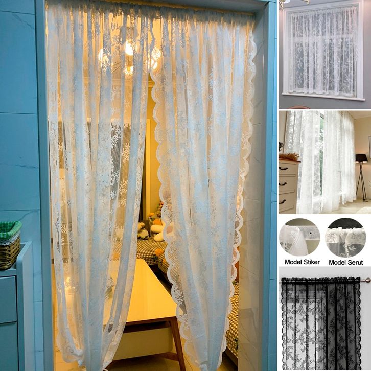 Vitrase Gorden Putih Magic Self Adhesive Polos Vitrase Gorden Siang Transparan Motif Salju Gorden Macrame