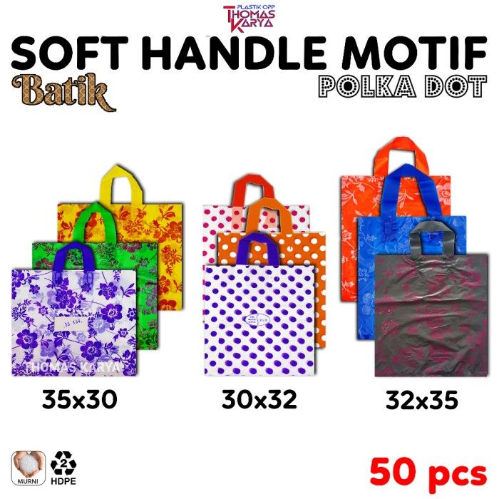 NEW Kantong Plastik Hajatan 35x30 30x32 32x35 Motif BATIK POLKADOT isi 50 Tas Soft Handle Hidangan Snack